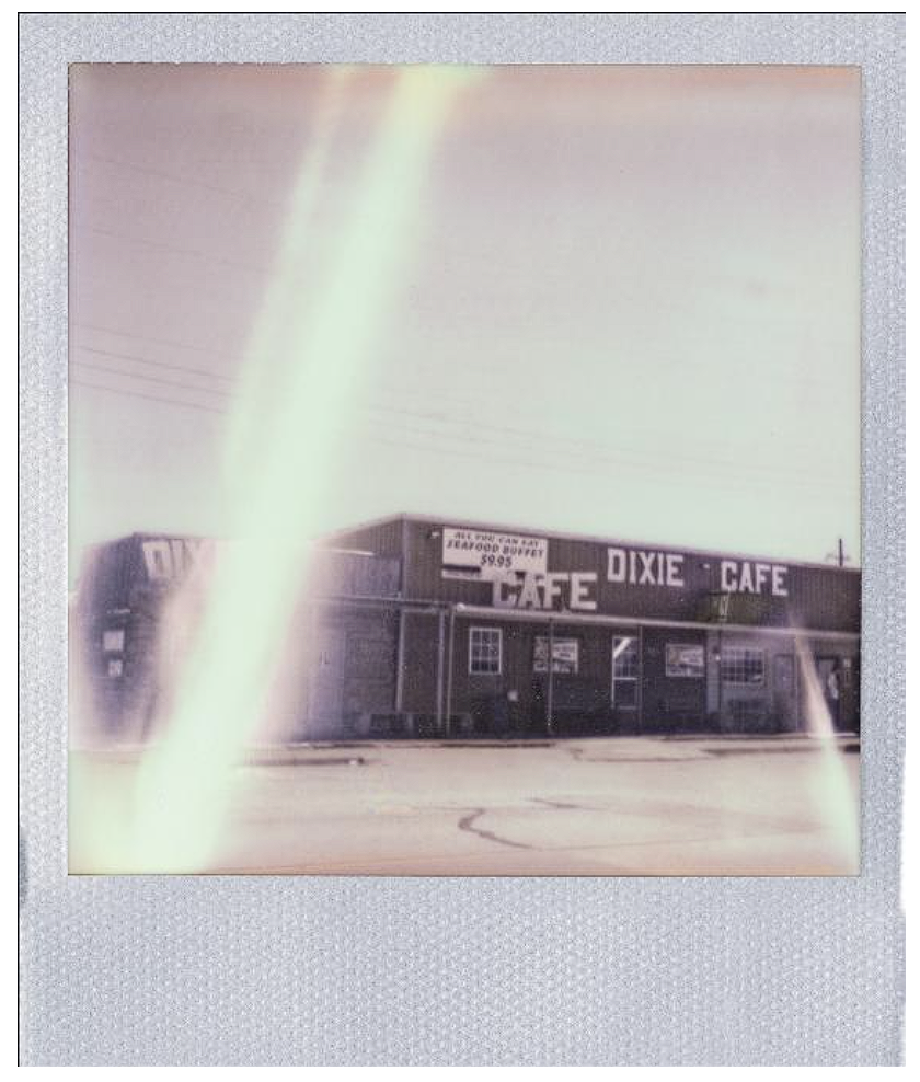 Because Pa was so busy recording sound and Ma collecting documents, it was my job to capture images on the road. A lot of the pictures I took turned out as a white blur, but then Ma fixed the camera, and I was able to take some pretty good pictures of the things we saw. I created an inventory of Polaroids to keep a record of what we saw, prove we were there, and create an archive of my own.
